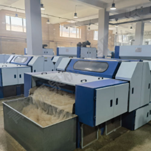 本機(jī)開松由雙錫林排列,一輥筒軟開,二輥筒精開。工作輥與撥毛輥結(jié) 合錫林滾筒可達(dá)到開松梳理出單纖維且蓬松狀態(tài)的動(dòng)物纖維。后輥筒部 分有去粗、去雜效果;分梳行業(yè)為最前道工序,效果突出,是聯(lián)合梳理 機(jī)必備產(chǎn)品之一。